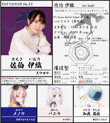 ちゃろ~、おにじです(激寒) え~、長らく止まっていた声優名鑑シリーズだが、今年に入ってから基本的に裏声優名鑑シリーズの準備を進めており、これの更新がそろそろ始められそうな感じである。 なので当ブログではまた声優名鑑シリーズが再開する予定だ…