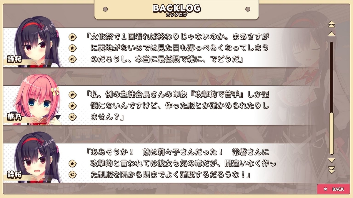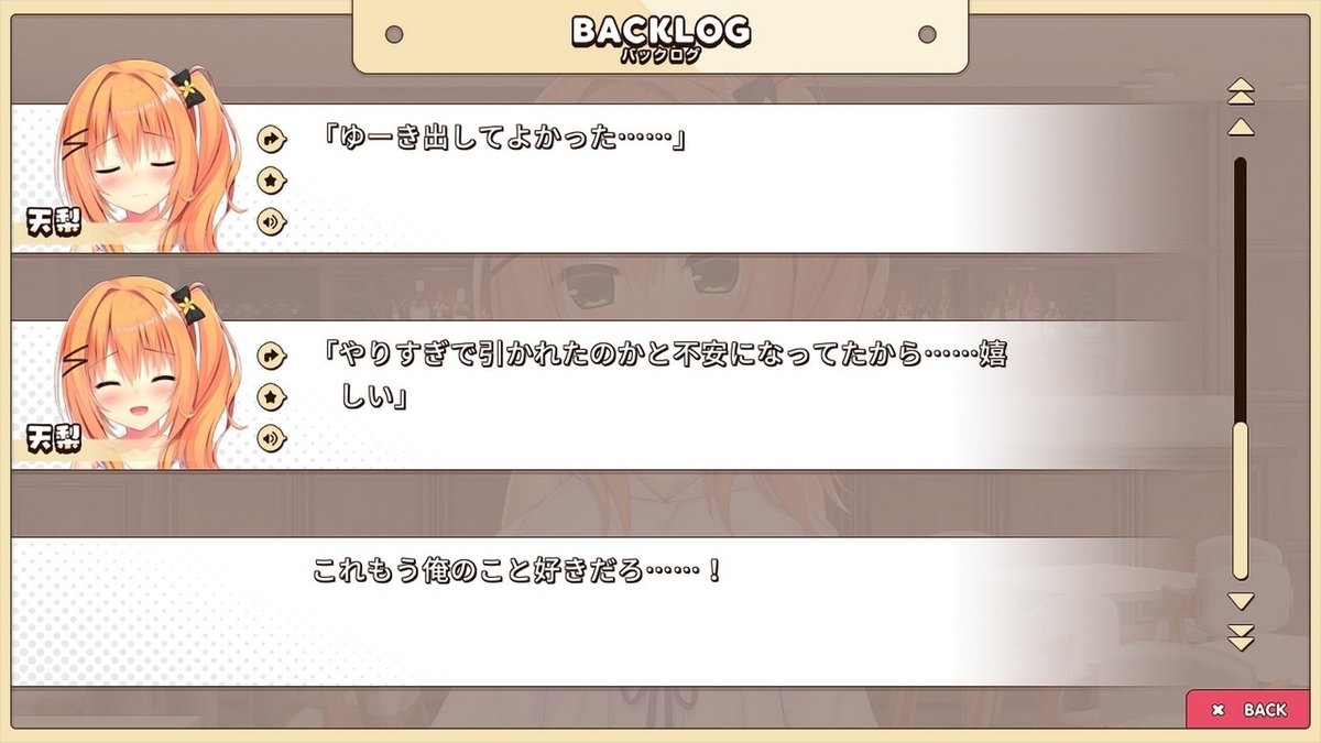 原画と塗りもかなり洗練された感じであったし、システム的な所ではお気に入りボイスがしっかりとあったりと、そういう部分もある程度の充実度を感じることが出来た。