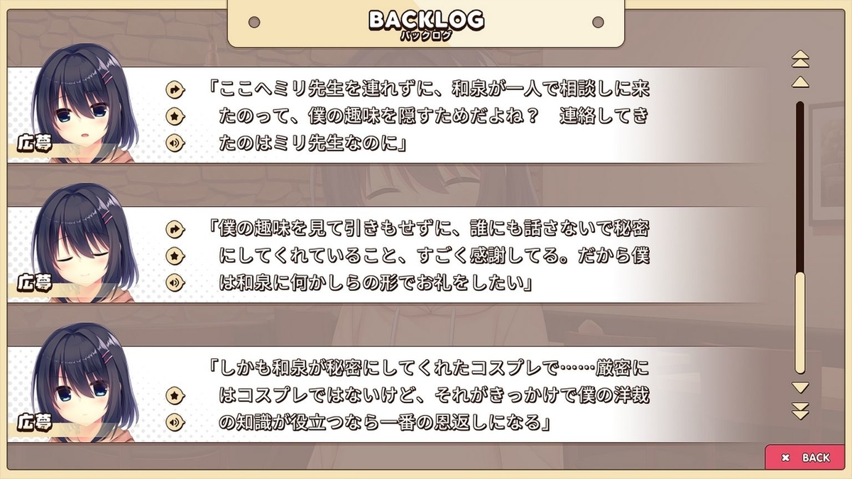 広夢の活躍って基本的にあすみ√に限られる所があったけど、コスプレ含めて服の部分で広夢が活きてきそうとは。