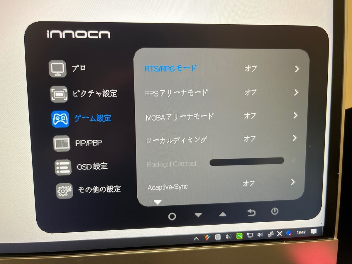 同じく『ゲーム設定』の『ローカルディミング』は、このモニターの一つの目玉ポイントとも言える。