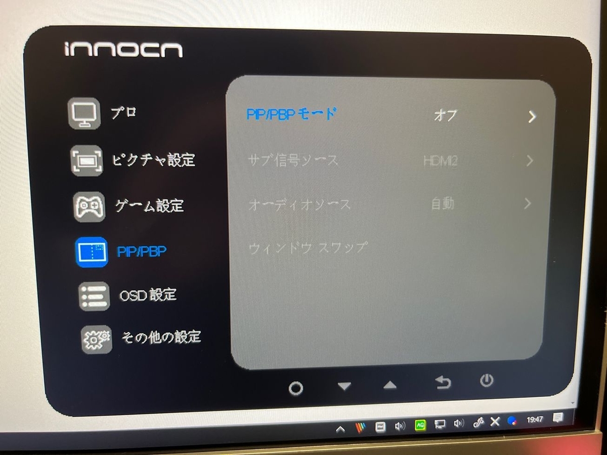 こういうディスプレイってオートが存在して、オンオフすることで勝手に切り替わってくれるというのが一般的なのだが、コイツオートがない。