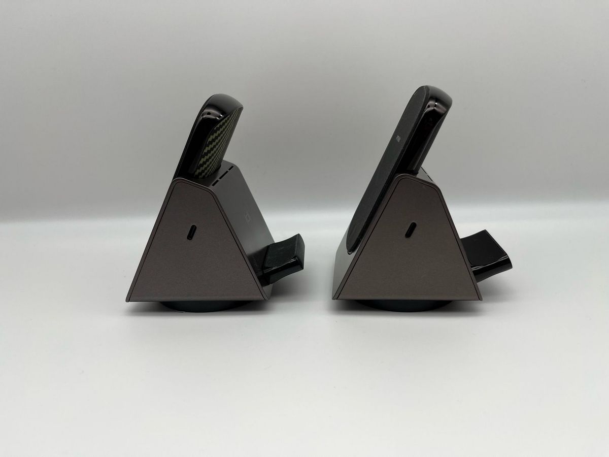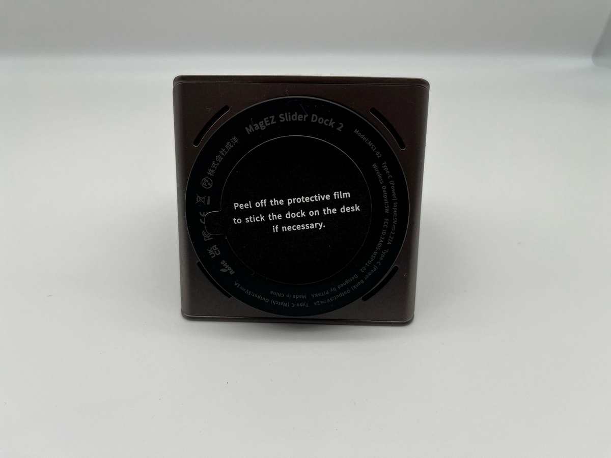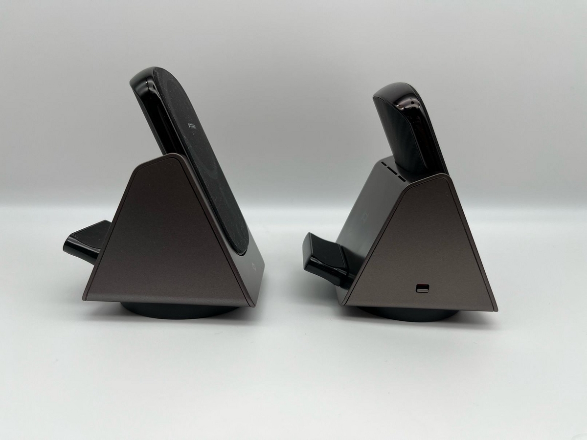 裏面はQi充電の場所になっており、前述している土台をマグネットでくっつけることで、縦置き横置きに対応している。