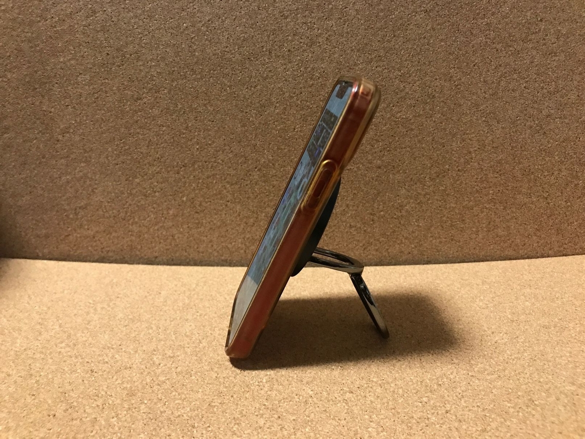 しかもそこそこ安定する。これは一つ目のリングは平らになっている部分があるのも効いていそうだ。(スマホスタンドに比べれば勿論安定感はない)
