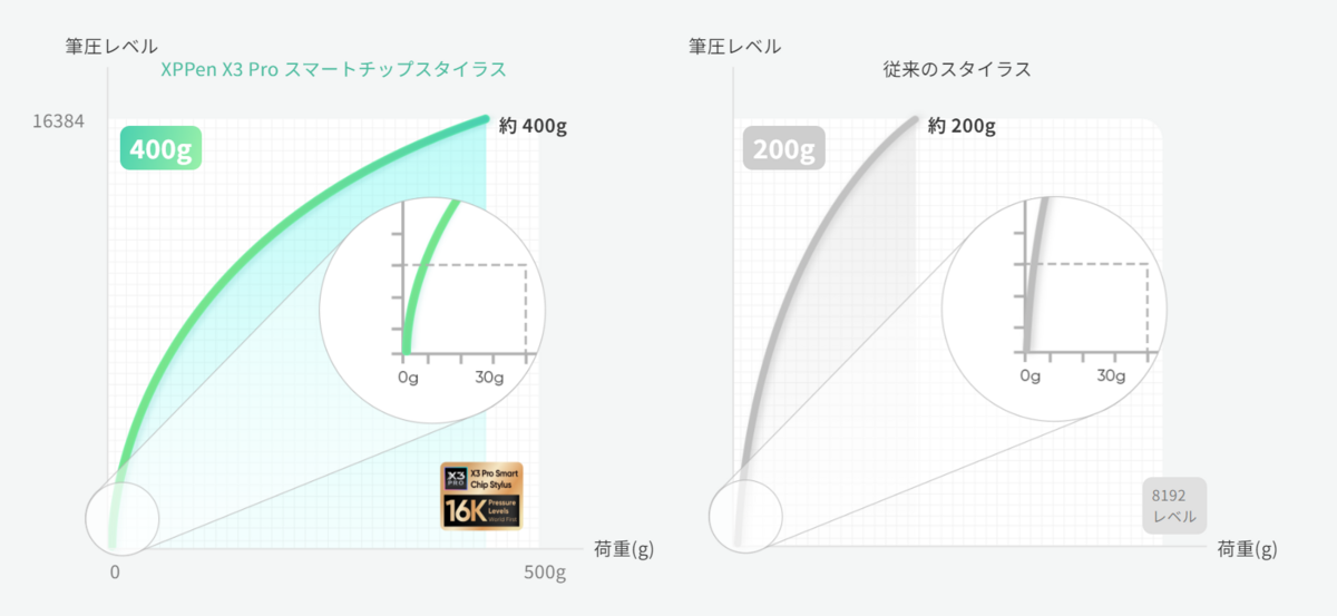 前述した通り、この商品はX3Proスマートチップとかいうチップが搭載されているので、ペン側のスペックも高い訳で。