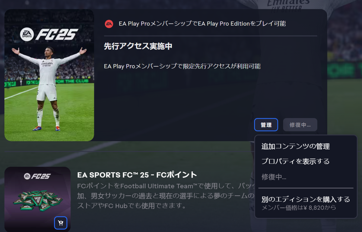こちらはEA App版。