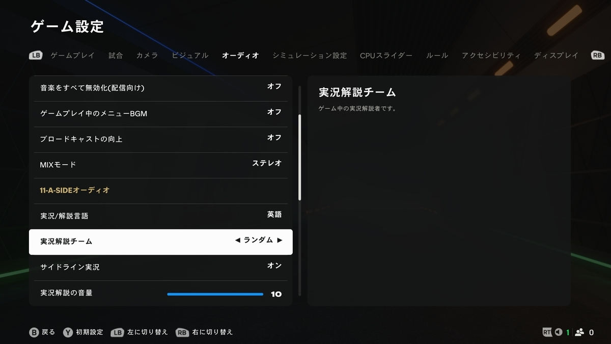 今作は英語実況であれば、恐らく何の操作もしなくても英語実況出ます。